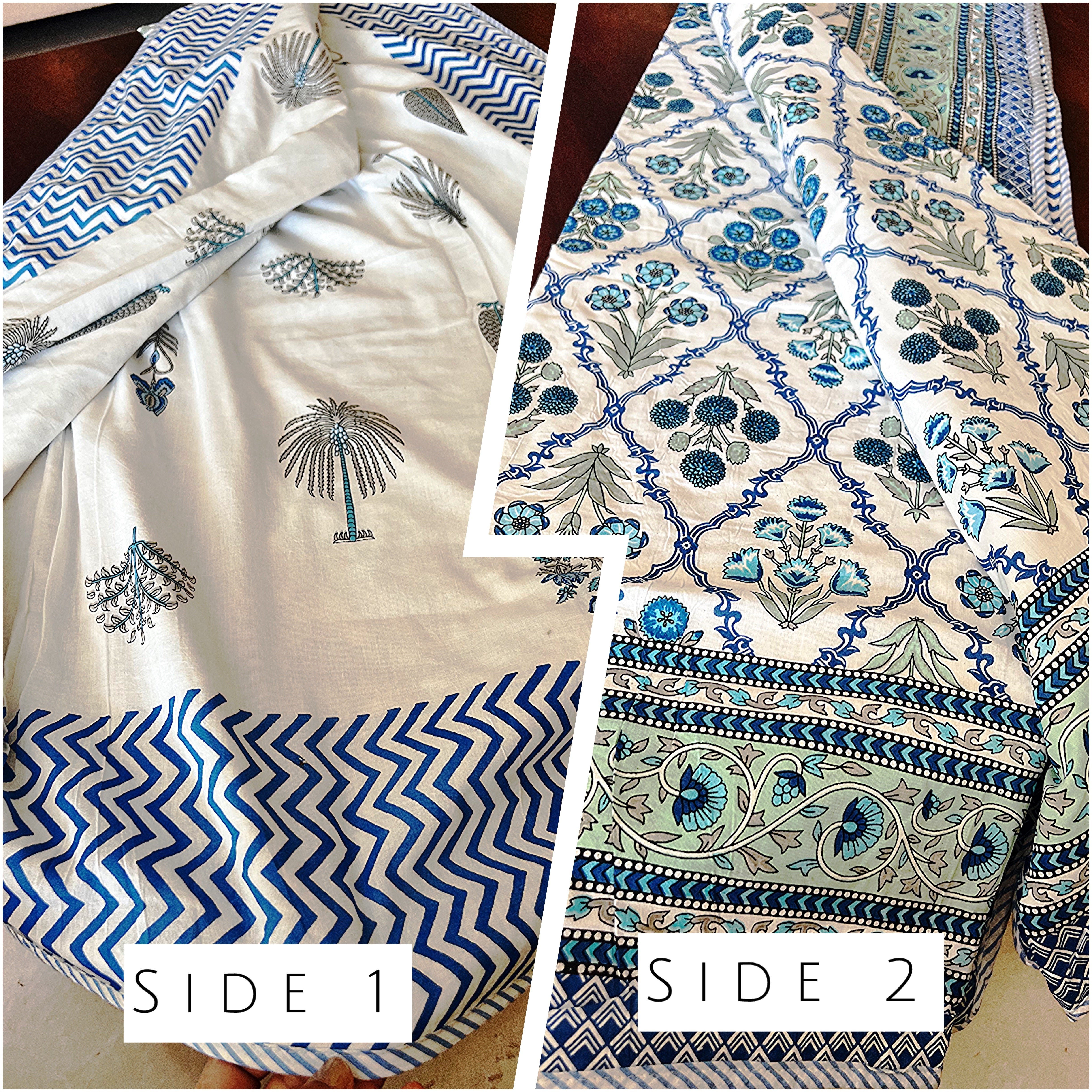Jaipuri reversible dohars are lightweight, breathable summer quilts crafted with soft mulmul cotton and traditional block prints.