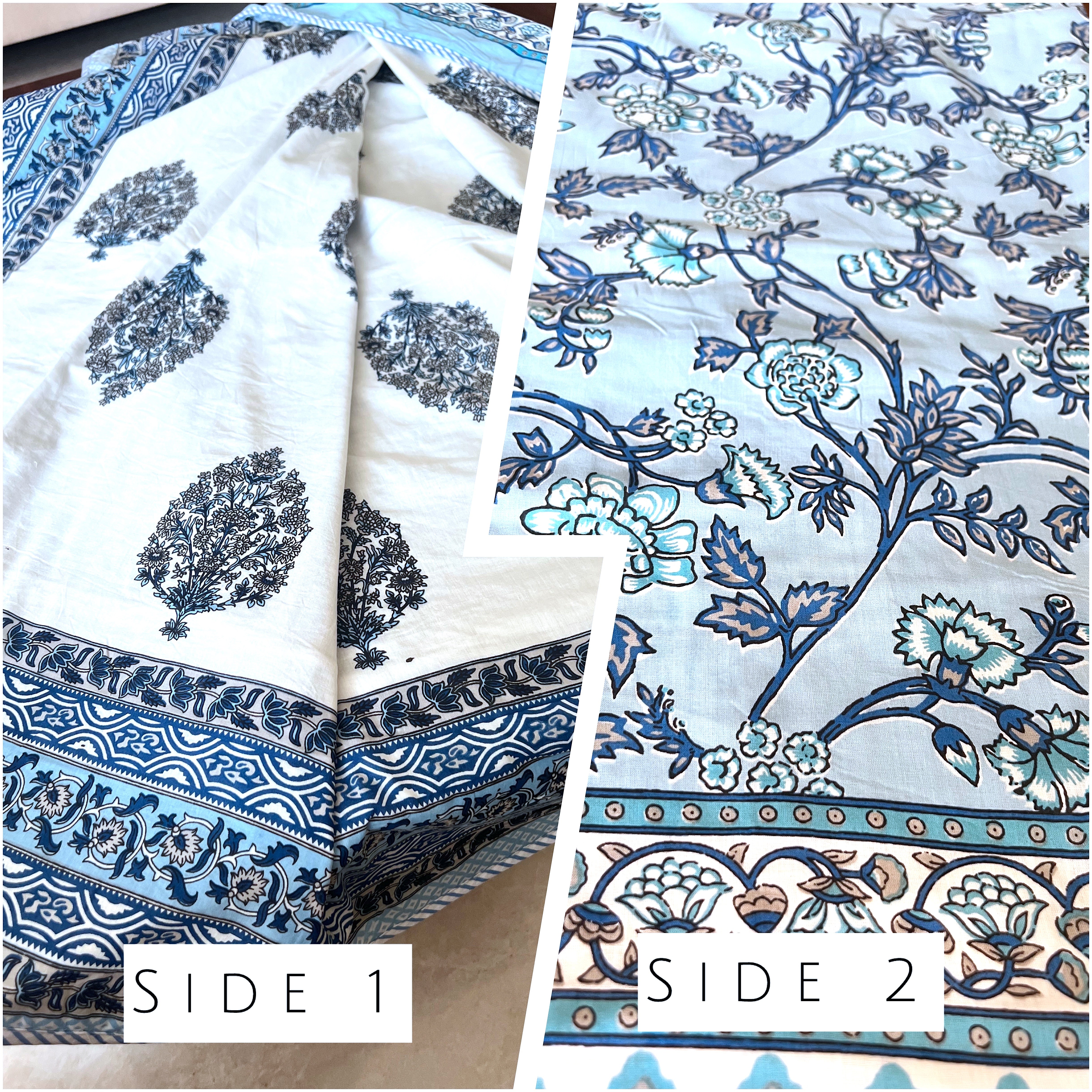 Jaipuri reversible dohars are lightweight, breathable summer quilts crafted with soft mulmul cotton and traditional block prints.